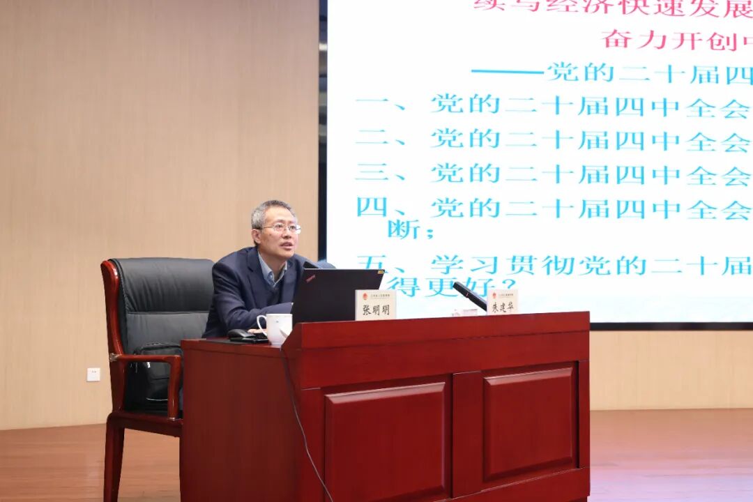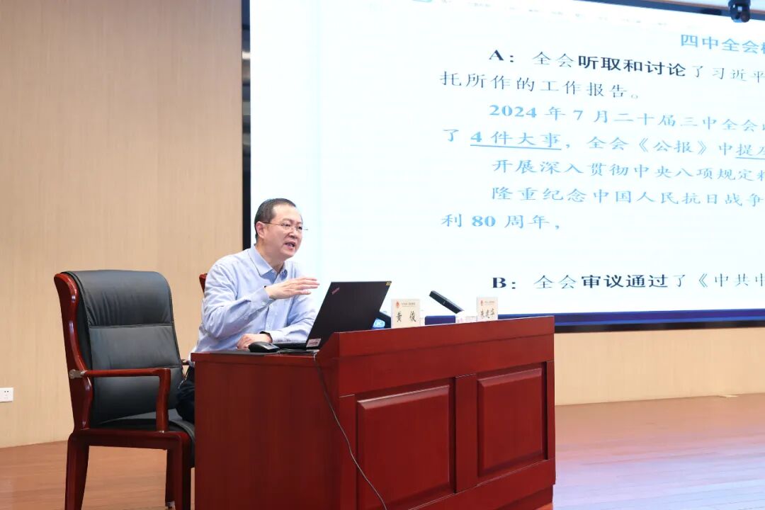 培训班邀请省委研究室副主任黄俊,新华日报新华红党建创新研究院首席研究员、南京师范大学党建研究中心主任张明明等2位宣讲团成员,就二十届四中全会的历史方位、核心精神以及全省贯彻二十届四中全会精神的实践路径等主题,为省检察院全体干警进行了深入浅出、干货满满的专题辅导。在交流讨论环节,省检察院各党支部干警紧紧围绕学习内容、立足岗位实际,以“深学全会精神提升检察履职质效”为主题开展分组讨论,不断推动理论学习入脑入心。