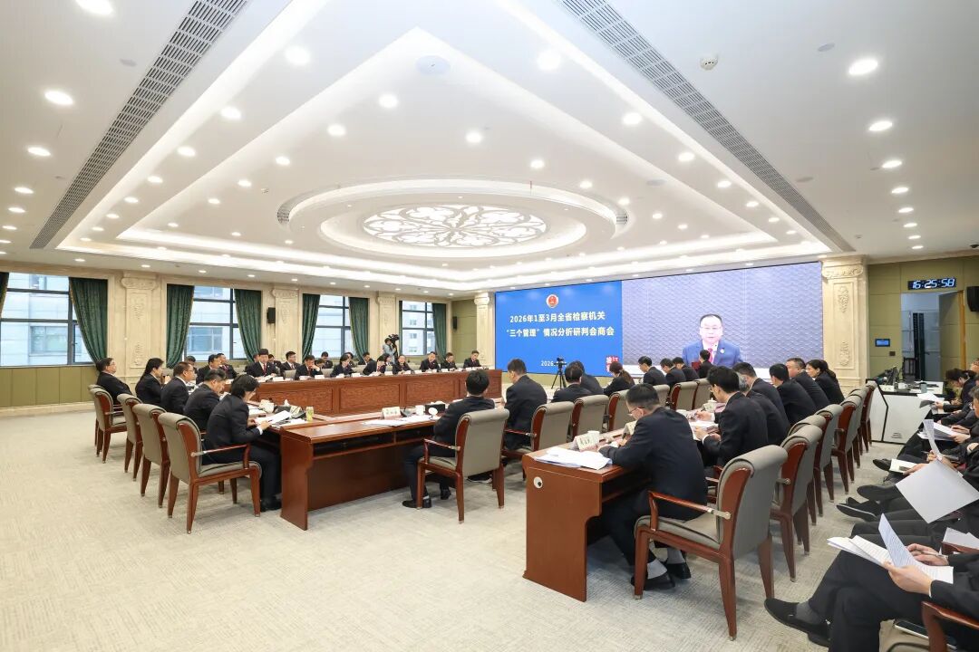 4月21日下午,省检察院召开2026年1至3月全省检察机关“三个管理”情况分析研判会商会议,通过分析研判及时发现检察业务发展中存在的问题,推动及时整改,为全年检察工作高质量发展打下坚实的基础。省检察院党组书记、检察长赵铁实出席会议并讲话,党组副书记、副检察长李爱君主持会议。