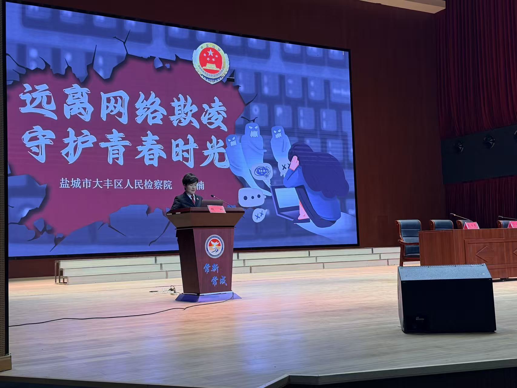 近日,盐城市大丰区检察院“星星点灯”未检工作室的检察官走进区常新路初级中学,带来一堂别开生面的法治课。没有枯燥的说教,只有鲜活的案例和热烈的互动——主题直指当下青少年最熟悉也最容易忽视的问题:网络欺凌。