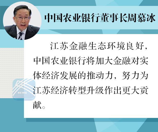 周慕冰表示,江苏经济发达,金融生态环境良好,双方进一步深化合作具有良好的基础。中国农业银行将以此次战略合作为发展契机,充分发挥自身特色和优势,加大金融对实体经济发展的推动力,大力服务地方经济社会发展,努力为江苏经济转型升级作出更大贡献。