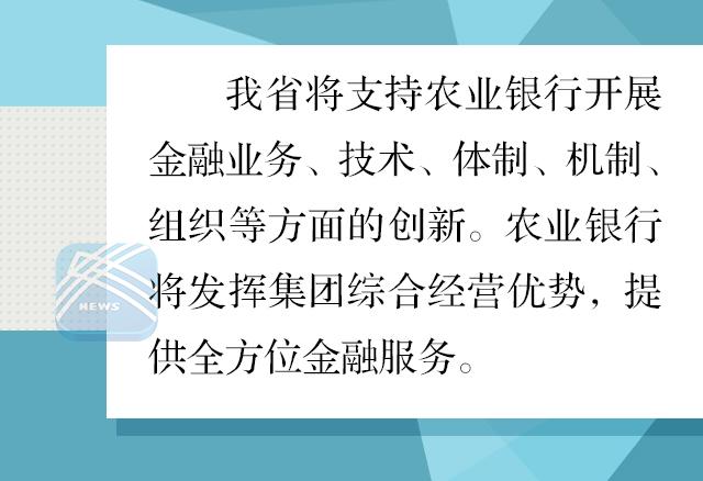 根据协议,我省和中国农业银行作为重要战略合作伙伴,将巩固深化全面、长期和稳定的合作关系,共同推进江苏地方经济持续高水平发展。我省将支持农业银行开展金融业务、技术、体制、机制、组织等方面的创新。农业银行将发挥集团综合经营优势,提供全方位金融服务,推动“强富美高”新江苏建设取得新进展。