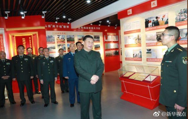 【习近平:要学习践行“两不怕”精神】13日下午,习近平来到第71集团军某旅王杰生前所在连,视察连队荣誉室,走进王杰班与战士座谈。他充分肯定连队尊崇英雄、学习英雄的做法,指出一不怕苦、二不怕死精神过去是、现在是、将来永远是我们宝贵的精神财富,广大官兵要努力学习践行“两不怕”精神,争做新时代王杰式的好战士。 (摄影李刚)