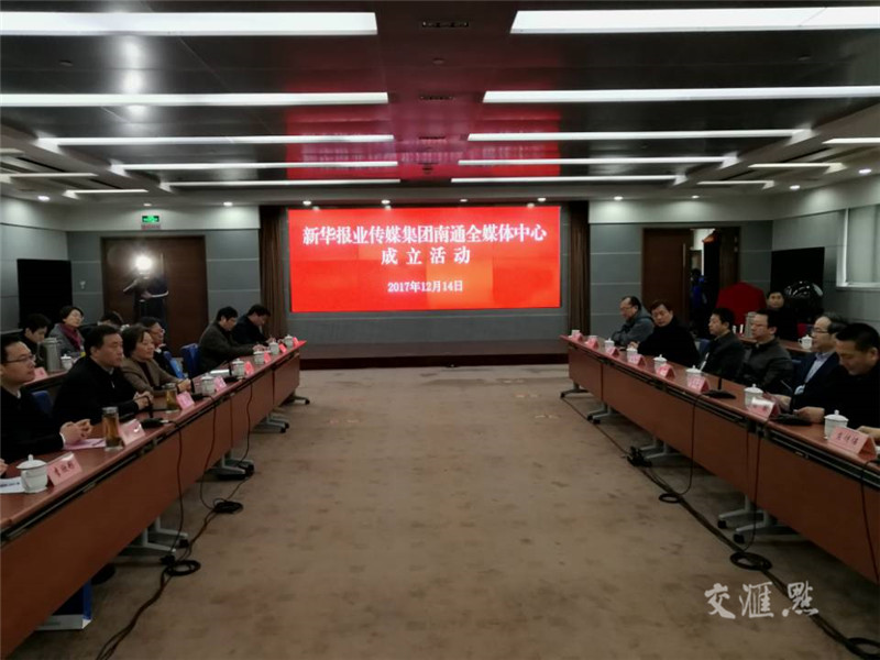 新华报业传媒集团南通全媒体中心是继苏州、徐州之后,新华报业集团在地方成立的第三家全媒体中心,将涵盖新华日报、中国江苏网、交汇点等新华报业传媒集团旗下纸媒、网媒、端媒三代传媒,实现力量资源整合化、传播方式立体化。成立活动上,南通市委常委、常务副市长单晓鸣与新华日报社副总编辑、中国江苏网总编辑陆峰共同按下启动球,开通交汇点南通频道。
