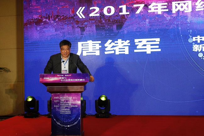 会上,人民网新媒体智库高级研究员刘鹏飞代表课题组发布了《2017互联网与社会治理报告》,分析2017年互联网与社会治理热度、代际特征、挑战与趋势,并揭晓2018年智库新著《世界形象地图——中国网民眼中的多元世界》。报告指出,2017年我国互联网新闻信息服务规范、网络版权、“互联网+政务”、金融文娱等网络新业态监管等,成果十分丰硕。但问题仍大量存在,要找到治理平衡点,共建清朗网络空间,积极推进“互联网+社会治理”行动,增强群众获得感。