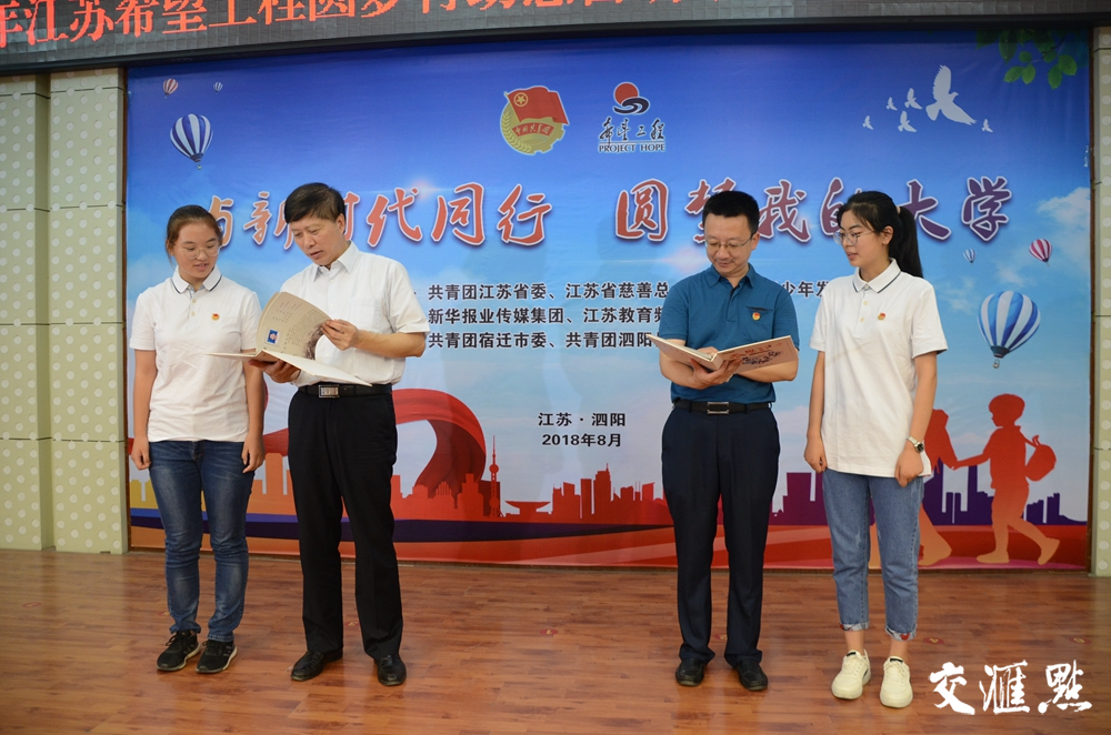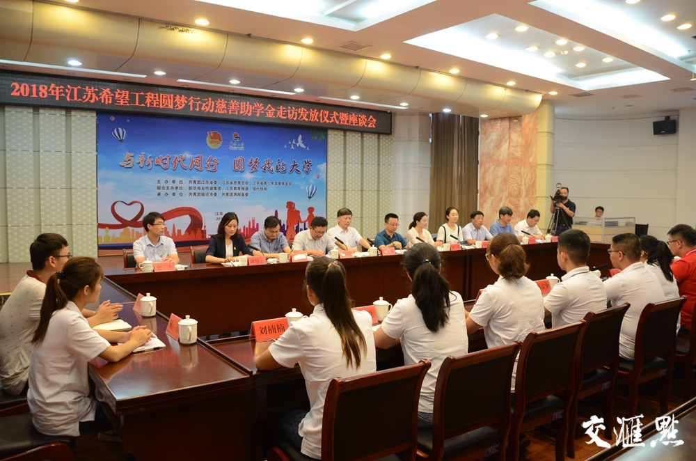 交汇点讯 8月29日上午,团省委、省慈善总会、省青基会联合赴宿迁泗阳县开展2018年江苏希望工程圆梦行动慈善助学金走访发放活动并召开座谈会。