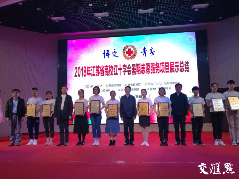据悉,全省高校红十字会以红十字青年志愿者为主力军,围绕“学习雷锋、关爱生命、传播爱心、服务社会”志愿服务主题,累计11万余名高校红十字志愿者深入城乡,开展了丰富多彩、卓有成效的暑期志愿服务活动,受益人数超过90万人。2016年在省委宣传部主办的“首届江苏志愿服务展示交流会”上荣获“特别荣誉奖”;2017年又被全国宣传推选学雷锋志愿服务“四个100”先进典型活动组委会评为最佳志愿服务项目,成为江苏志愿服务的一个特色品牌。