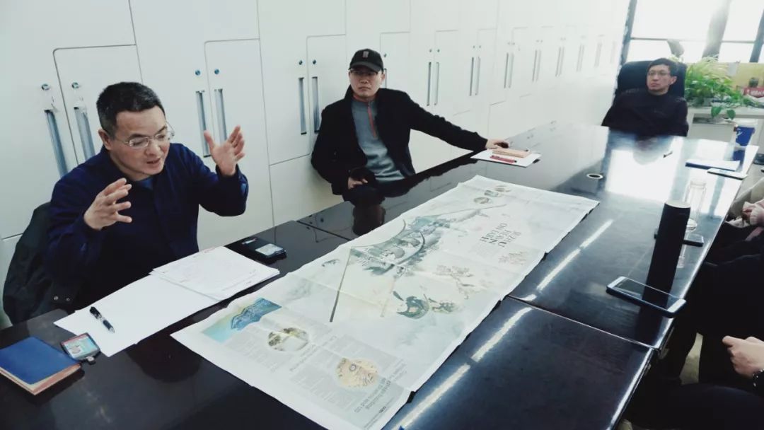 第二次碰头会,出版部会议桌上,铺满了大样、素材、资料。分析研究、比对梳理、大体框架……一轮轮讨论沟通,一次次思想碰撞,八联版创意方案更加清晰。