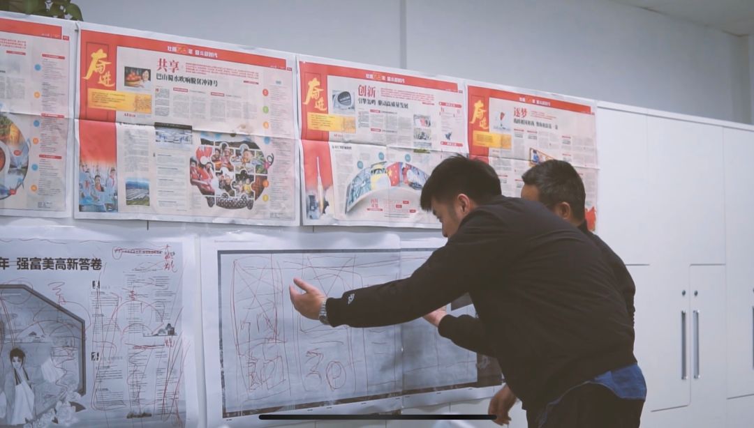 第三次碰头会,八联版大样初现雏形。提建议,谈构思,从内容清单到版式创意,从版心设计到图片选择,从整体风格到细节完善,逐一“过堂”,创新的激情与灵感在再次汇聚、迸发。