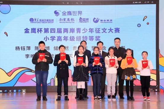 以文会友,续写两岸同宗同文血脉深情;携手同行,为苏台青少年打造文化交流盛会。12月22日上午,在省台办和省教育厅的关心指导下,由新华报业传媒集团、台湾联合报系联合主办,南京晨报、台湾好读周报和江苏省写作学会联合承办,金鹰独家冠名的“金鹰杯”两岸青少年征文大赛举行盛大颁奖仪式。江苏省台办副主任李卫华,新华报业传媒集团纪委书记赵准,江苏省作协副主席、著名儿童文学作家祁智,金鹰商贸集团副总裁王轩等为获奖小选手颁发了证书。昨天的盛典上,李卫华和赵准为南京晨报赴台交流访问团授旗。2020年1月15日,44名小团员将代表获奖小选手赴台参加颁奖典礼和一系列文化交流活动。