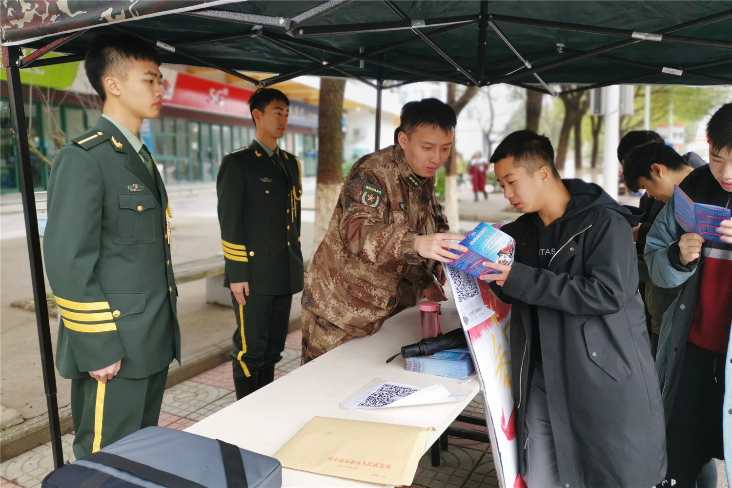 区人武部深入高校,通过悬挂横幅、现场咨询、发放资料、典型激励等方式,宣讲春季征兵大学生入伍政策,动员青年学生投身军营、报效祖国,为春季征兵工作奠定良好基础。