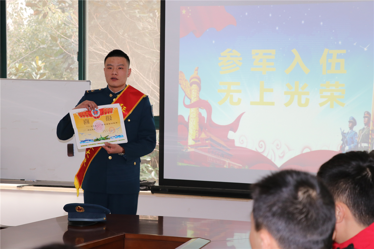 殷振宏动情地对他们说:“看到你们就像当初的自己,对部队很憧憬,满腔热血。希望大家有机会到部队,发挥特长和优点,为军队建设贡献力量。”