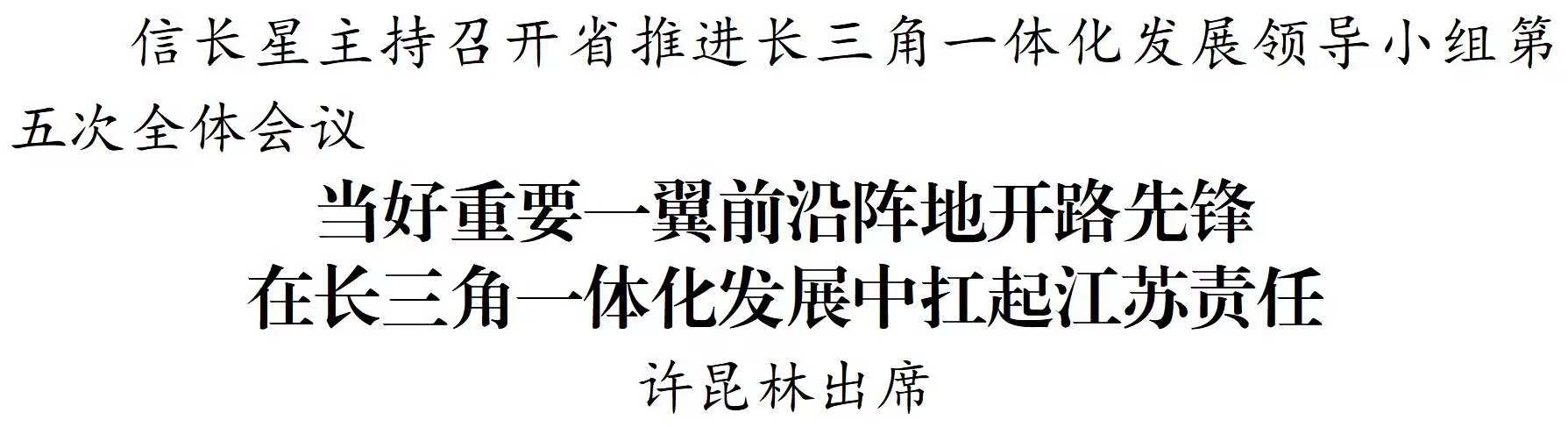 会议指出,今年是长三角一体化发展上升为国家战略5周年,也是习近平总书记在合肥主持召开座谈会3周年。回顾新时代以来应对变化变局、大战大考的历程,我们更加深切感悟到这一战略对于强国建设、民族复兴的重要意义。要深入学习贯彻习近平总书记重要指示精神,胸怀“两个大局”、牢记“国之大者”,深刻认识新形势下江苏承担的重大责任,在推进长三角一体化发展中当好实体厚实、底盘扎实、根基稳固的“重要一翼”,当好构建新发展格局的“前沿阵地”,当好我国产业科技创新的“开路先锋”。