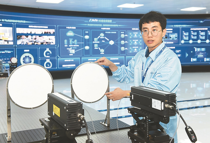 6G综合实验室,技术人员介绍光载太赫兹通信系统架构。