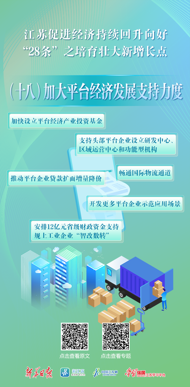 江苏促进经济持续回升向好“28条”系列海报⑱|加大平台经济发展支持力度