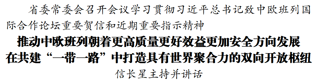 会议指出,习近平总书记一直十分关心、十分重视中欧班列发展,这次专门向中欧班列国际合作论坛致贺信,充分肯定班列发展成效,深刻阐明开放合作立场,为中欧班列高质量发展指明了方向。论坛取得圆满成功,各方反响热烈。我们要深入学习领会习近平总书记重要贺信精神,认真落实丁薛祥副总理讲话要求,坚持把巩固稳定提升中欧班列作为扩大高水平对外开放的重要抓手,放大中欧班列国际合作论坛效应,持续为高质量共建“一带一路”、促进开放合作贡献力量。要更高站位推进“一带一路”交汇点建设,秉承丝路精神,坚持共商共建共享原则,加快打造一批更具影响力的标志性成果,拓展“走出去”“引进来”的广度和深度,助力建设开放型世界经济。要更大力度打造具有世界聚合力的双向开放枢纽,营造市场化、法治化、国际化一流营商环境,吸引更多拥有国际先进技术的优质企业参与产业强链补链延链,让各种资源要素在江苏高效集聚、流动、配置、增值,在服务全国构建新发展格局中发挥重要的枢纽作用、支撑作用和示范引领作用。要更高水平建设国际运输通道,充分发挥江苏陆海联运、双向开放和产业基础雄厚的优势,加强多式联运和集疏运能力建设,不断提高班列运营水平,跟踪落实论坛达成的重要成果,共同推动中欧班列朝着更高质量、更好效益、更加安全方向发展,为经济发展注入新动力新活力。