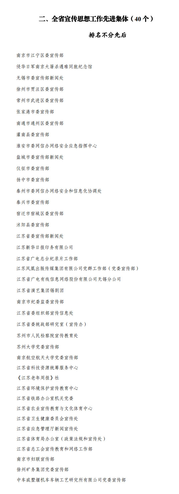根据省委宣传部、省人力资源社会保障厅《关于评选表彰全省宣传系统先进工作者暨全省宣传思想工作先进集体和优秀宣传思想工作者的通知》(苏人社函〔2023〕375号)精神及有关规定,经自下而上、层层推荐、逐级审核,并报全省宣传系统评选表彰工作领导小组审议,拟表彰屠康敏等全省宣传系统先进工作者30名、南京市江宁区委宣传部等全省宣传思想工作先进集体40个、戴六华等全省优秀宣传思想工作者120名。为充分发扬民主、广泛听取意见、接受社会监督,现将拟表彰对象进行公示,公示时间:2023年11月13日至17日。