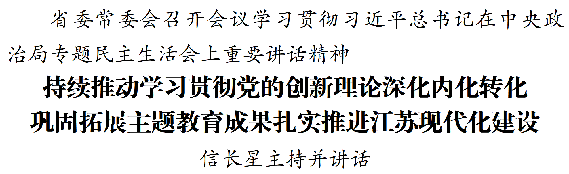 新华报业·新江苏讯 1月8日,省委常委会召开会议,深入学习领会习近平总书记在中央政治局专题民主生活会上的重要讲话和中央通报精神,认真对照检查,明确改进方向。省委书记信长星主持会议并讲话。省委常委同志交流学习体会。会上通报了省委常委会专题民主生活会查摆问题整改落实、主题教育省级层面专项整治情况。