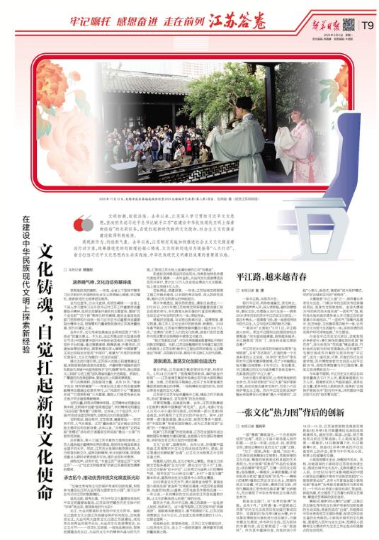 文明如潮,弦歌浩荡。去年以来,江苏深入学习贯彻习近平文化思想,坚决担负起习近平总书记赋予江苏“在建设中华民族现代文明上探索新经验”的光荣任务,自觉扛起新时代新的文化使命,社会主义文化强省建设取得积极成效。
