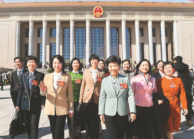 3月8日,“三八”国际妇女节,出席十四届全国人大二次会议的江苏女代表们意气风发走出人民大会堂。全国两会开幕以来,江苏女代表们积极建言献策,展示新时代女性的风采与担当,她们积极进取,以奋斗英姿绽放时代芳华。 记者 肖勇 万程鹏 摄