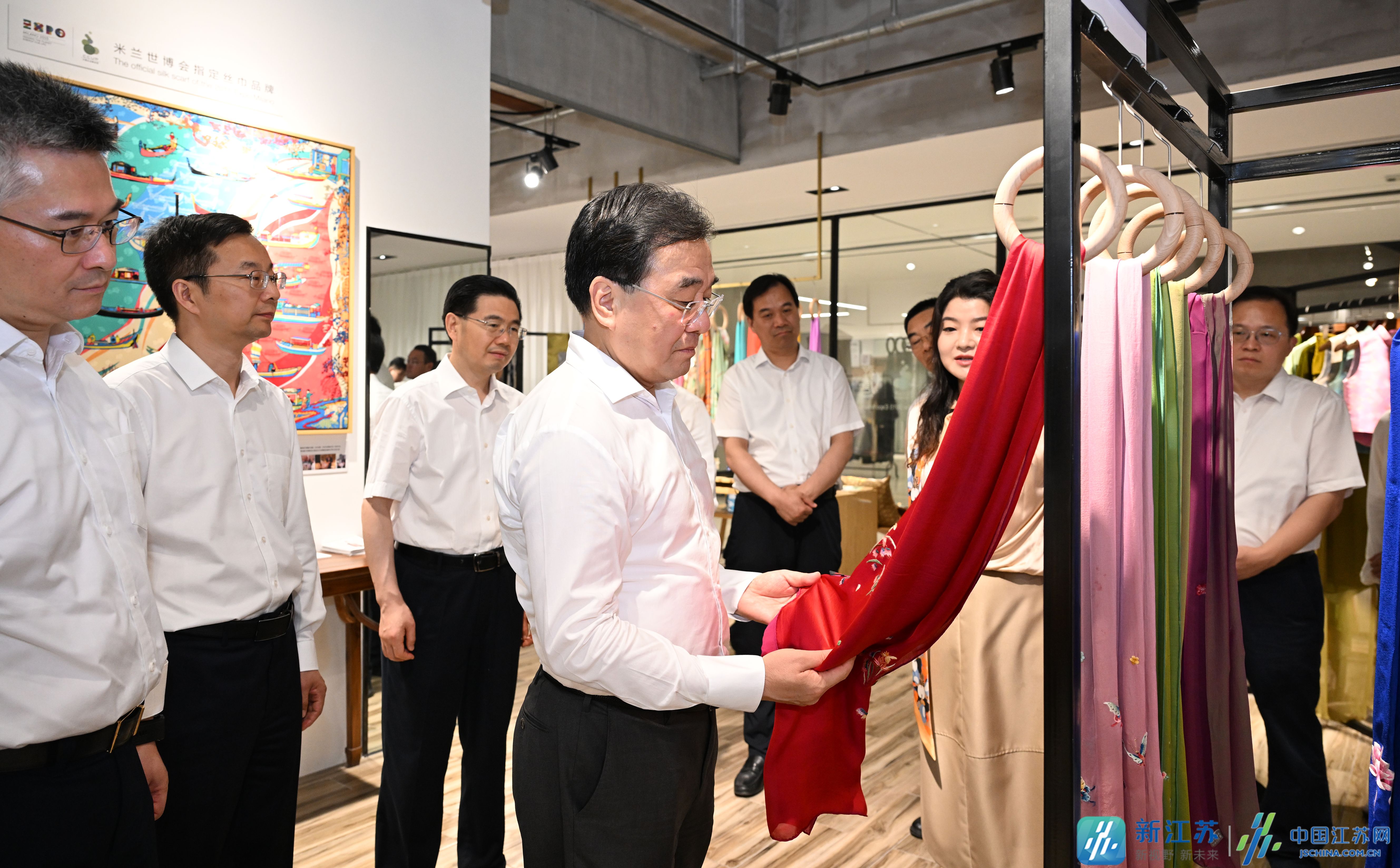 晨风时尚创意产业园通过空间再造、业态转型,集聚了一批设计师工作室、直播电商平台、工厂直营店。信长星参观数字面料技术、民族服饰文化传承创新、个性化服装定制等,与设计师深入交流。他指出,这里既有服务业与制造业相融合,也有科技与时尚相辉映。要把握时代审美心理和流行趋势,充分结合中华优秀传统文化加以创新,创造更多创意丰富、制作考究的精品,展现中国风格、中国气派。