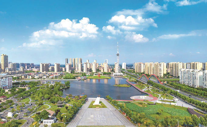 水润兴化,如诗如画。兴化以特色产业片区为引领,以科技创新为核心,以农文旅融合发展为方向,因地制宜加快发展新质生产力,打造全省产业升级示范地、全国绿色发展样板区。图为兴化市区鸟瞰。 董鑫 史道智 吴俊翔/文 周社根/摄 (视觉江苏网供图)