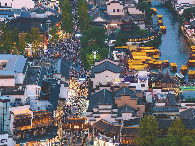 10月1日,大批游客涌进南京夫子庙景区参观游玩,欢乐度假。杨素平 摄 (视觉江苏网供图)