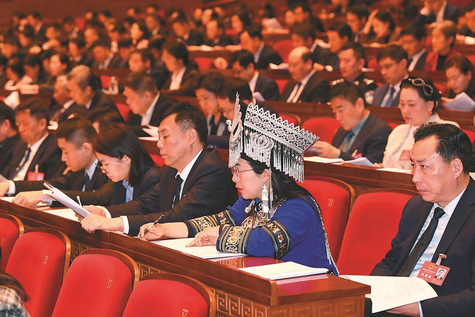 省人大代表认真听取省人大常委会工作报告和两院工作报告