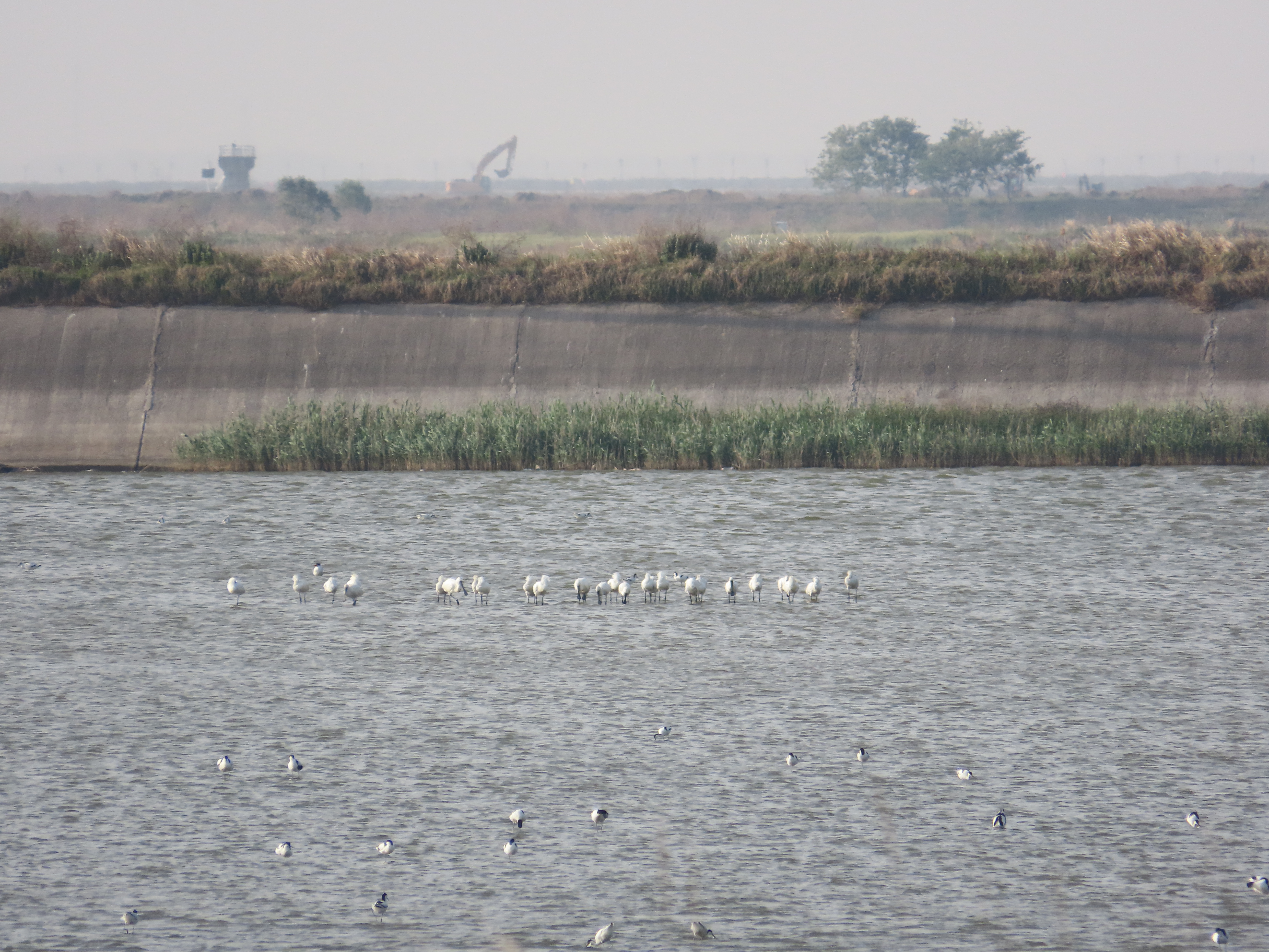 下午四点半,潮水渐渐退去,滩涂上的鸟儿飞远,奥卡一家人准备离开景区。沿着木栈道步行,他们又在“720”看到了上午见过的一大群黑脸琵鹭。接下来几天的潮水越来越小,不太适宜观鸟,一家人计划向北开,去大丰看麋鹿。