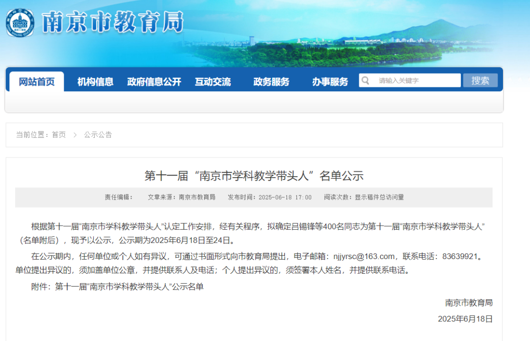 交汇点讯 “火车快不快,关键车头带”。日前,南京市教育局公示第十一届“南京市学科教学带头人”名单,共有400人入选。