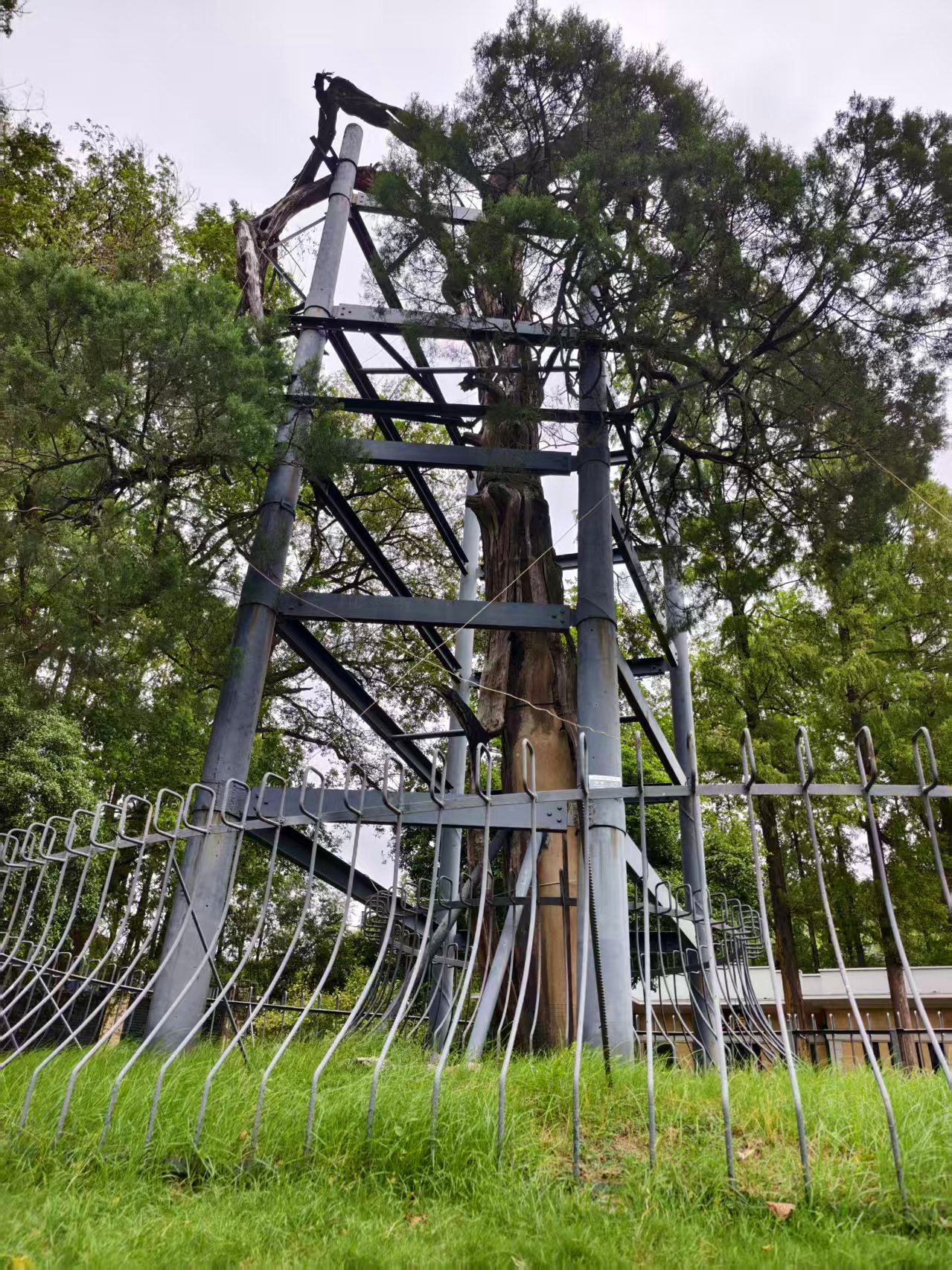 古树名木被称为“绿色活化石”,它们见证着自然环境的变迁,是珍贵的不可再生的宝贵资源。古树名木常常与饱经沧桑的古建筑相伴生。第一批“国保单位·古树名木”协同保护名录共有28项,其中很多古树名木的“年龄”甚至超过其所伴随的国保单位古建筑,如树龄3000年的山西晋祠周柏,树龄5000年的山西黄帝陵黄帝手植柏、保生柏等。在江苏省内,也有很多与文保古建筑“共生”的古树名木,如位于苏州碑刻博物馆的南宋“寿杏”,徐州户部山民俗博物馆有数百年历史的银杏,南京东南大学四牌楼校区内的“六朝松”,苏州忠王府文徵明手植紫藤等,它们虽然尚未入选“国保单位·古树名木”名录,但同样得到妥善护理,目前长势良好。