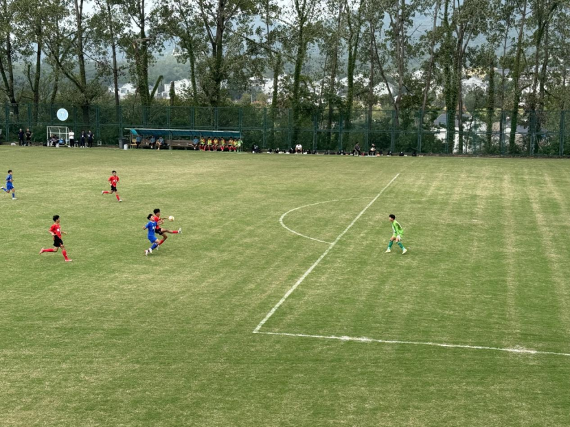 本次赛事的所有竞赛场次都安排在上午进行,2日上午一共进行了A组和B组的5场比赛。在省江宁足球训练基地专业的足球场上,这群十三四岁的小球员们呈现出的对抗、脚法、配合一点不差,在速率、长传球脚法等方面还有不小的进步空间。