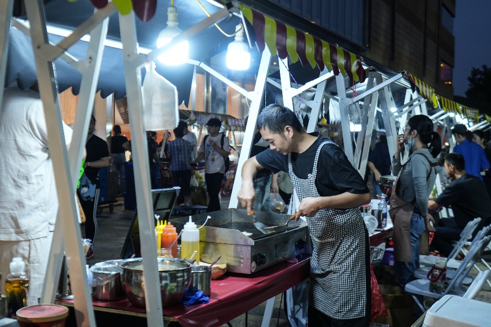 不止于此,多元业态在此交织碰撞,共同搭建起一个充满活力的消费生态圈:依托今夏“苏超”热度,体育互动板块通过趣味游戏、周边产品售卖,将体育IP流量导入市集;二手交易板块以绿色消费为理念,将闲置物品交易转化为新消费场景;就业板块则让招聘走进人群,在轻松互动中链接机会……这些业态相互补充、形成共振,不仅丰富了市民的消费选择,更将国潮经济、夜间经济、外摆经济、二手经济等新兴消费模式集中“落地开花”,为区域经济注入了蓬勃活力。