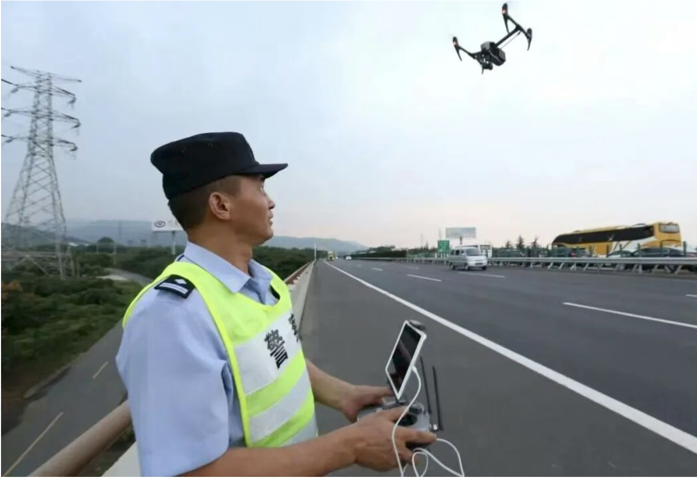 警用无人机便携机动、可操控性强,有效弥补视频监控存在“盲区”的缺点,空中视角精准锁定分心驾驶、违法变道、低速行驶等显见违法行为,协同地面警力开展现场管控与交通疏导,显著改善大流量路段的交通秩序。南京、无锡、苏州、盐城、宿迁等地交管部门围绕拥堵路段和关键节点,紧盯显见交通违法行为,广泛应用警用无人机进行空中抓拍取证,加大现场和非现场处罚力度。