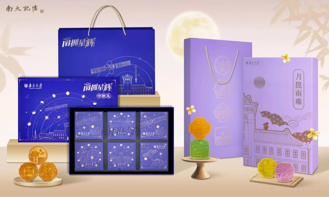 南京大学推出两款中秋月饼礼盒,分别是“南拥星辉”和“月揽南雍”。“南拥星辉”致敬南大人在天文科技领域做出的杰出贡献,采用传统广式月饼搭配创新口味。