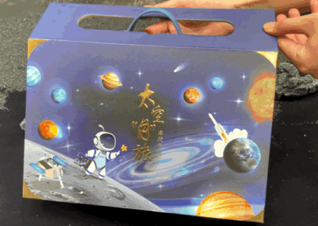 南京航空航天大学月饼礼盒以太空“月”旅为主题,融入航天器、月球、银河等元素,讲述一场浪漫的“登月”故事。每盒月饼有杨枝甘露、生椰奶咖、咸柠檬牛乳、玫瑰豆沙、香芋Q心蛋黄和奶油芝士6个创新口味,采用潮式制作方式,酥脆鲜香。