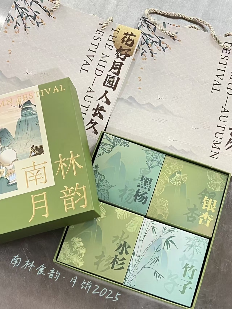 今年的月饼礼盒继续采用经典设计,分两枚装、四枚装、六枚装三种规格。三种礼盒的主体均为手绘经典校园地标建筑物的组合。礼盒内小盒上印着“水杉”“银杏”“鹅掌楸”“黑杨”“樱花”“竹子”这六种与南林颇有渊源的树木。