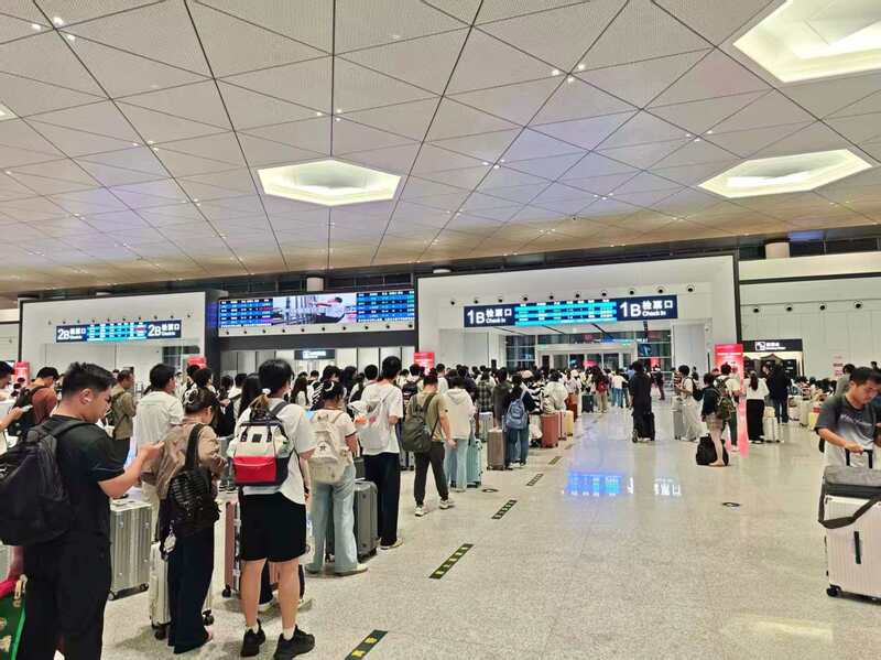 更让人暖心的是,铁路与文化同行。沪苏湖高铁盛泽站内,“双节同庆,旅途同行”快闪演出接连上演,民乐合奏《喜洋洋》《紫竹调》、京剧《管叫山河换新装》、二胡独奏《北京有个金太阳》、舞蹈《太湖美》《芒种》及乐队演唱等节目轮番登场,让旅客在候车间隙感受江南文化魅力,营造出“列车未动,文化先至”的出行体验。