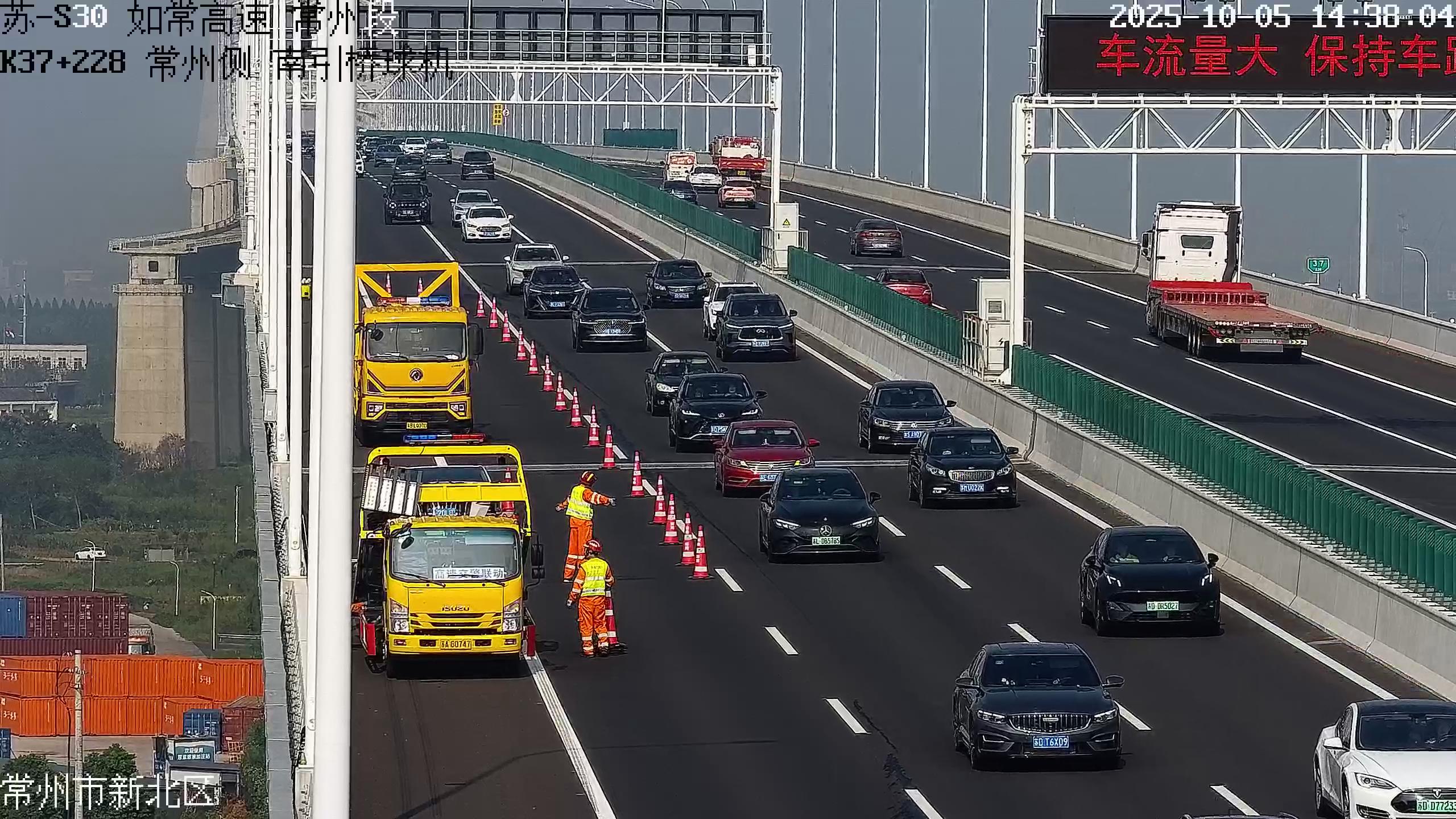 宁扬长江大桥则在保畅中升级服务,将收费站打造成“迷你服务区”。“面对长途过境与短途探亲、旅游流叠加压力,我们节前联合宁通支队第一大队、高速交警开展‘地毯式’排查,清除桥面、涵洞安全隐患,利用无人机巡查消除高护坡隐蔽风险。”宁扬长江大桥路段指挥中心主任郝思文表示,节日期间,龙潭、龙山两处收费站前置驻点的清障力量24小时待命,配备重型清障车、防撞缓冲车等专业装备,实现轻微事故“快处快撤”。此外,辖内收费站设置临时就餐点提供热食补给,配备新能源充电桩满足补能需求,截至10月6日,已累计为300余人次提供服务,让风尘仆仆的旅途多了一份暖意。