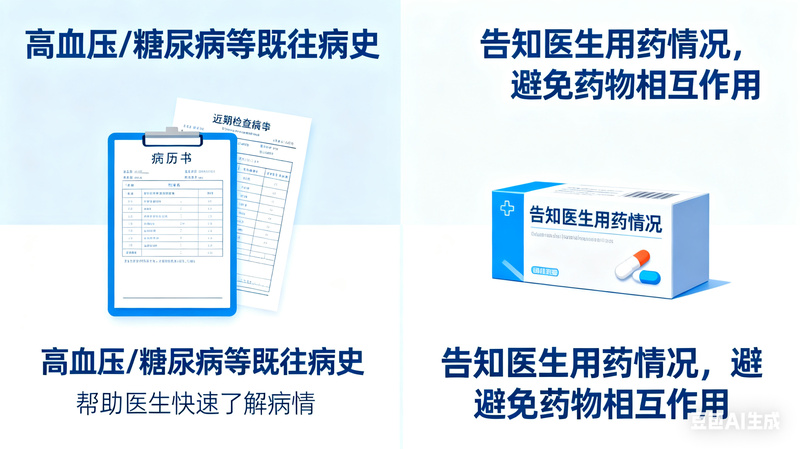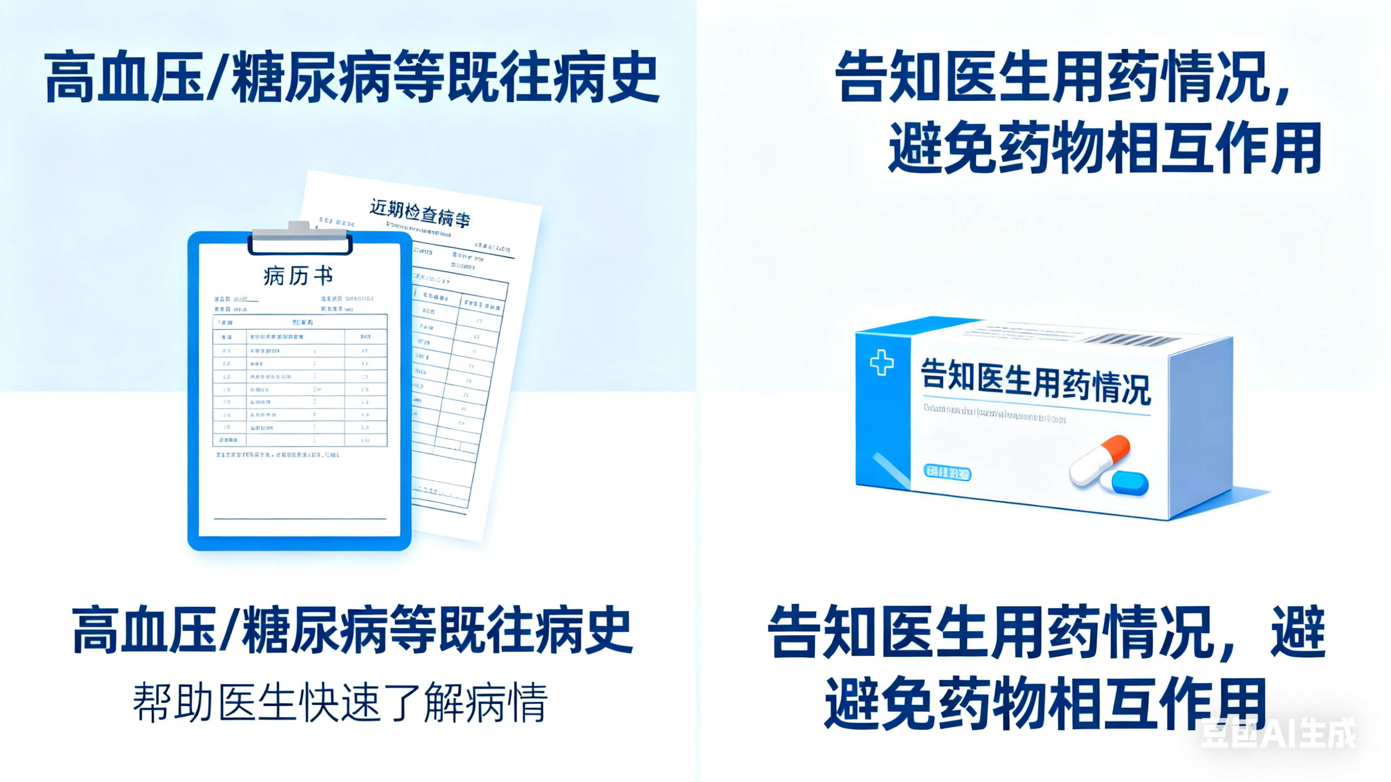 就医前做好“准备工作”。携带身份证和医保卡,方便挂号;若有既往病史,如高血压、糖尿病,需携带病历本、近期检查报告,让医生快速了解病情;若服用药物,可携带药盒,告知医生用药情况,避免药物相互作用。同时,提前通过医院公众号、支付宝 / 微信“挂号平台”预约挂号,减少现场排队时间;若前往急诊科,无需预约,直接到急诊科分诊台登记就诊。