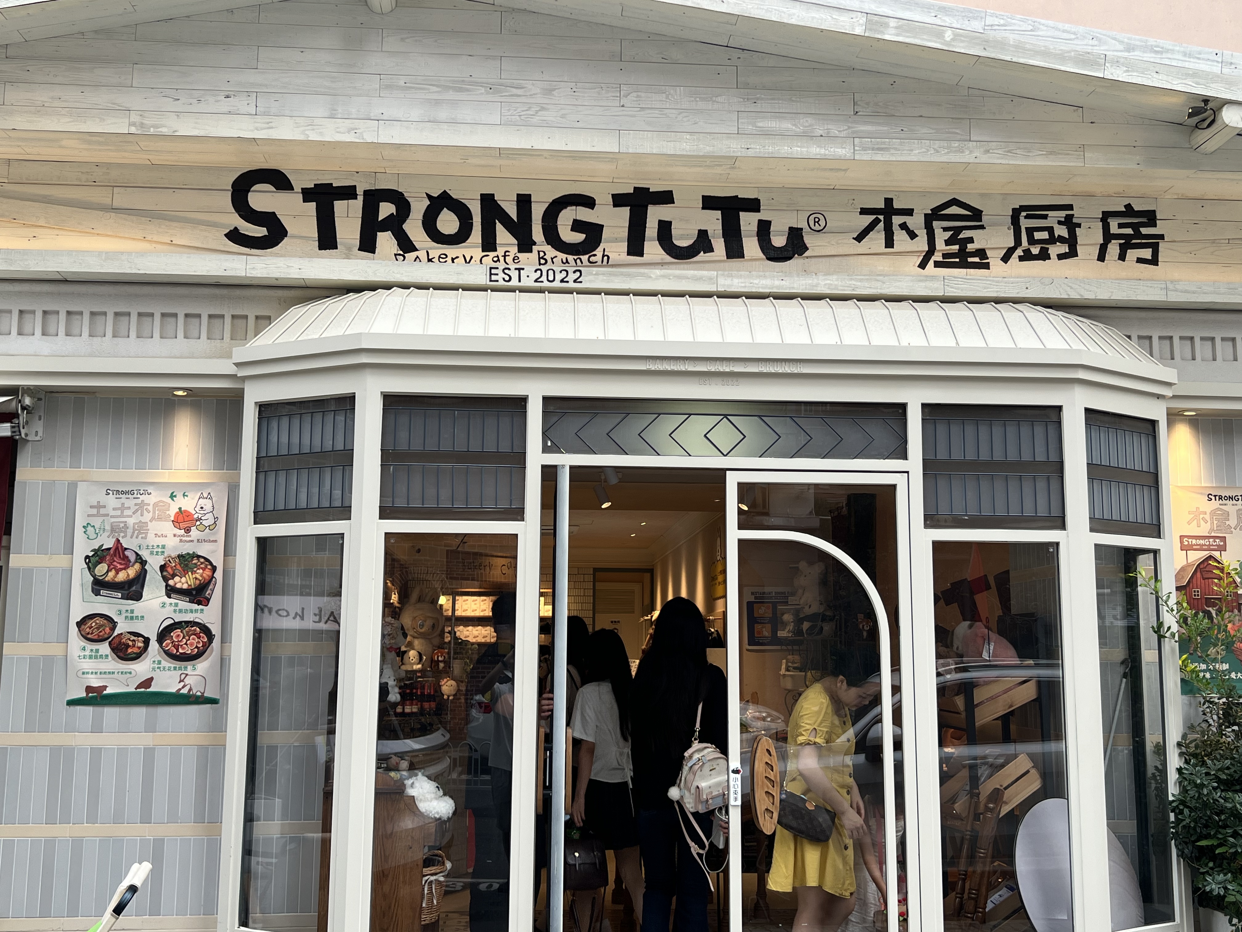 位于南京秦淮区南台巷的“强壮的土土”,为南京2024年“首创金陵特色品牌”之一,也是以宠物为品牌IP的一家网红餐厅。为了迎接假期,该店将门头改为木屋造型。