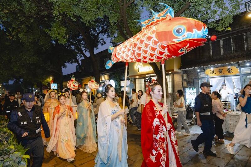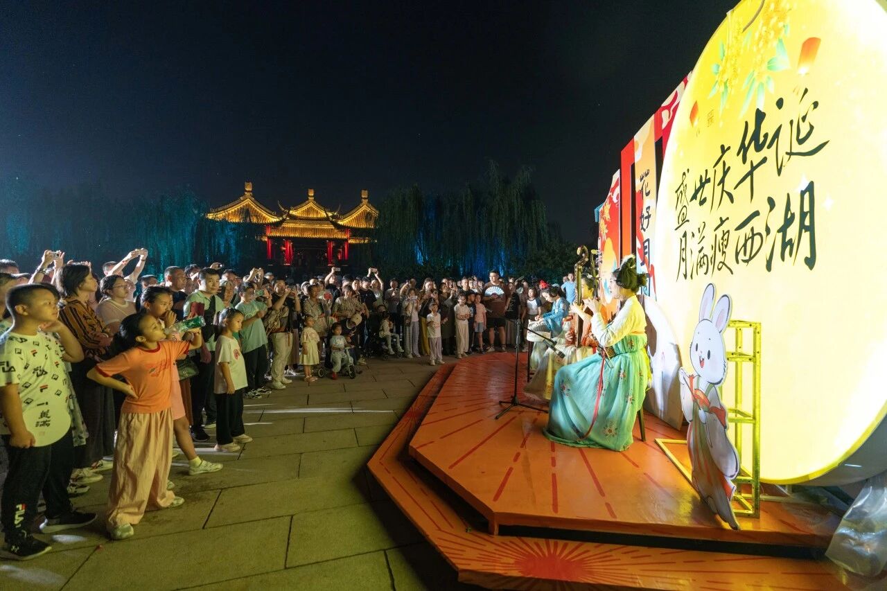 这个假期,传统景区也纷纷解锁里新玩法。“月满瘦西湖”中秋主题活动融合现代科技和古典美学,“嫦娥奔月”光影秀与重现《西游记》中经典的《天宫舞曲》古风舞蹈,呈现一场沉浸式的中秋文化视觉盛宴。何园打造的《何堂月色》夜游项目人气爆满,“光影+演艺+互动”新模式将何园内经典景观串联成一条梦幻的夜游路线。在个园,凡身着汉服的游客均可免费夜游个园,体验古典园林的夜色之美。