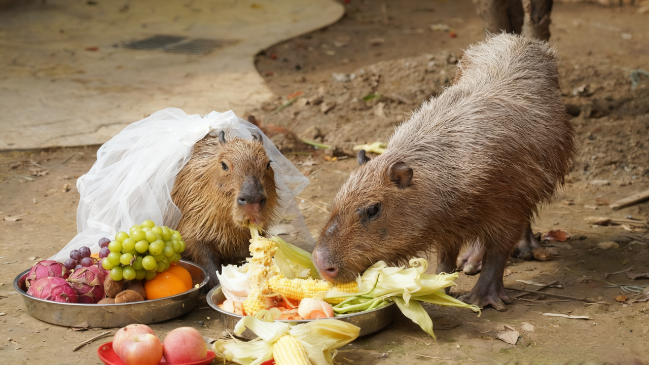 “良辰吉时已到!扬州茱萸湾动物园卡皮巴拉‘豆包’&‘核桃’的豚豚婚礼,正式开始!”10月7日上午9时58分,扬州茱萸湾动物园内爱意涌动,一场专为卡皮巴拉“豆包”与“核桃”打造的“豚豚婚礼”浪漫启幕。新娘“豆包”头戴精致白色头纱,娇俏可爱地紧跟在帅气新郎“核桃”身后,每一步都透着幸福。