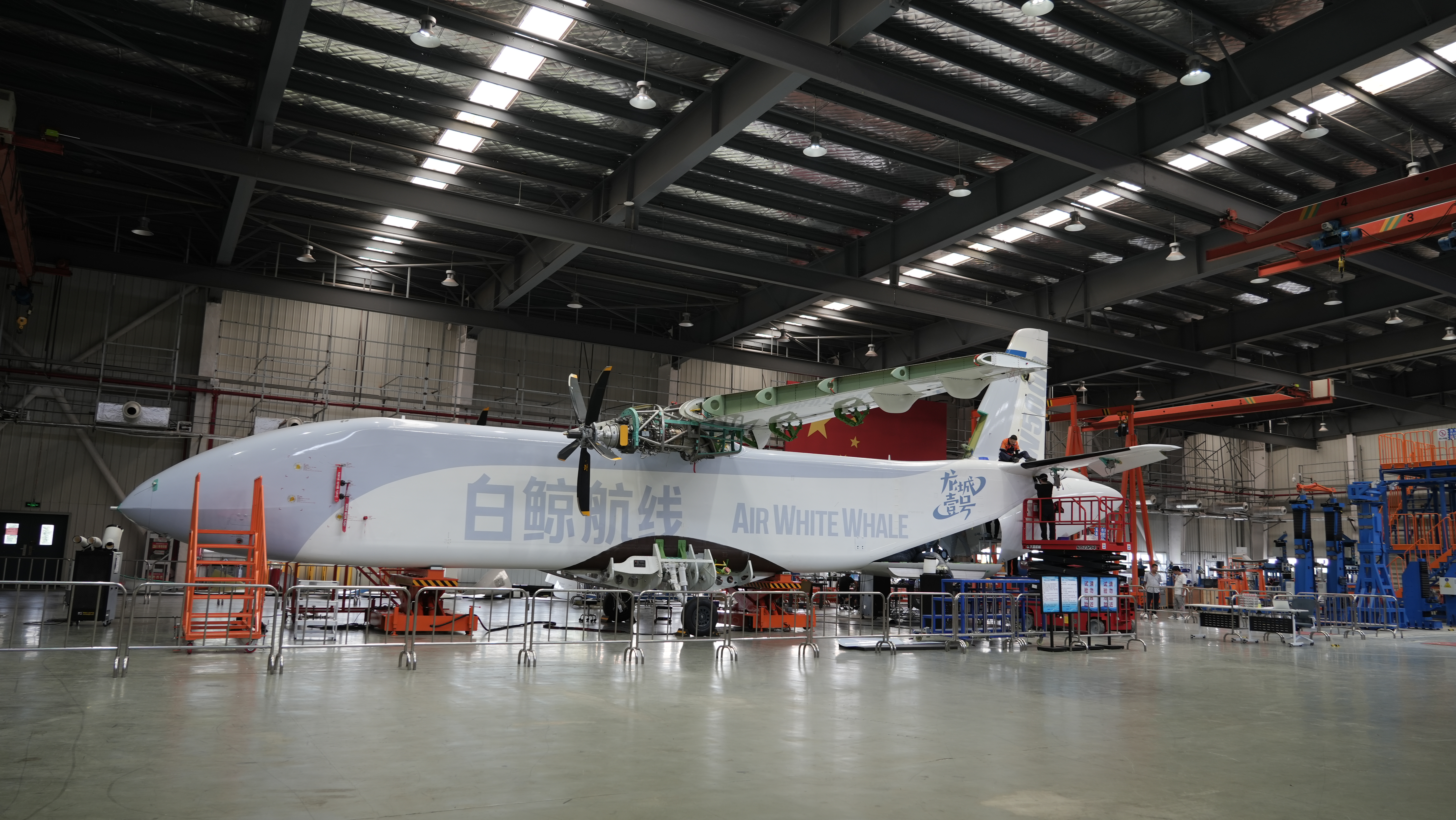 “机翼、垂尾与小翼已安装完毕,飞机即将被运往内蒙古鄂托克前旗进行测试。”9月30日,江苏常州空港产业园内,白鲸航线科技有限公司CPO李竹新介绍,这架名为“龙城壹号”的W5000无人货运飞机已进入适航取证阶段。