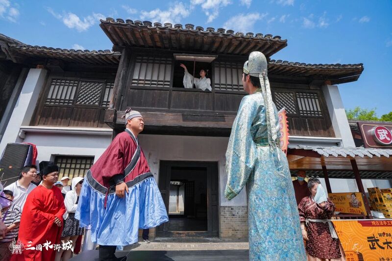 与此同时,无锡三国水浒城通过“全员入戏”的模式,将名著传奇搬回现实。这本是中央电视台为拍摄历史名著《三国演义》和《水浒传》而兴建的大型影视拍摄基地,以青砖黛瓦的古城楼,充满江湖气息的街巷,还原了三国风云与水浒豪情。在国庆中秋长假期间,演员们“神还原”名著角色,游客可以漫步在汉代宫阙下,听风吹过旌旗的飒飒声响,化身“剧中人”,与NPC深度互动——在阳谷县衙与“县官”对簿公堂,于王婆茶馆笑谈江湖恩怨。带娃出游的陈先生感慨:“孩子刚和武大郎聊完天,又在郑屠肉铺前目睹了‘鲁智深拳打镇关西’,这种沉浸感让名著活了起来。”