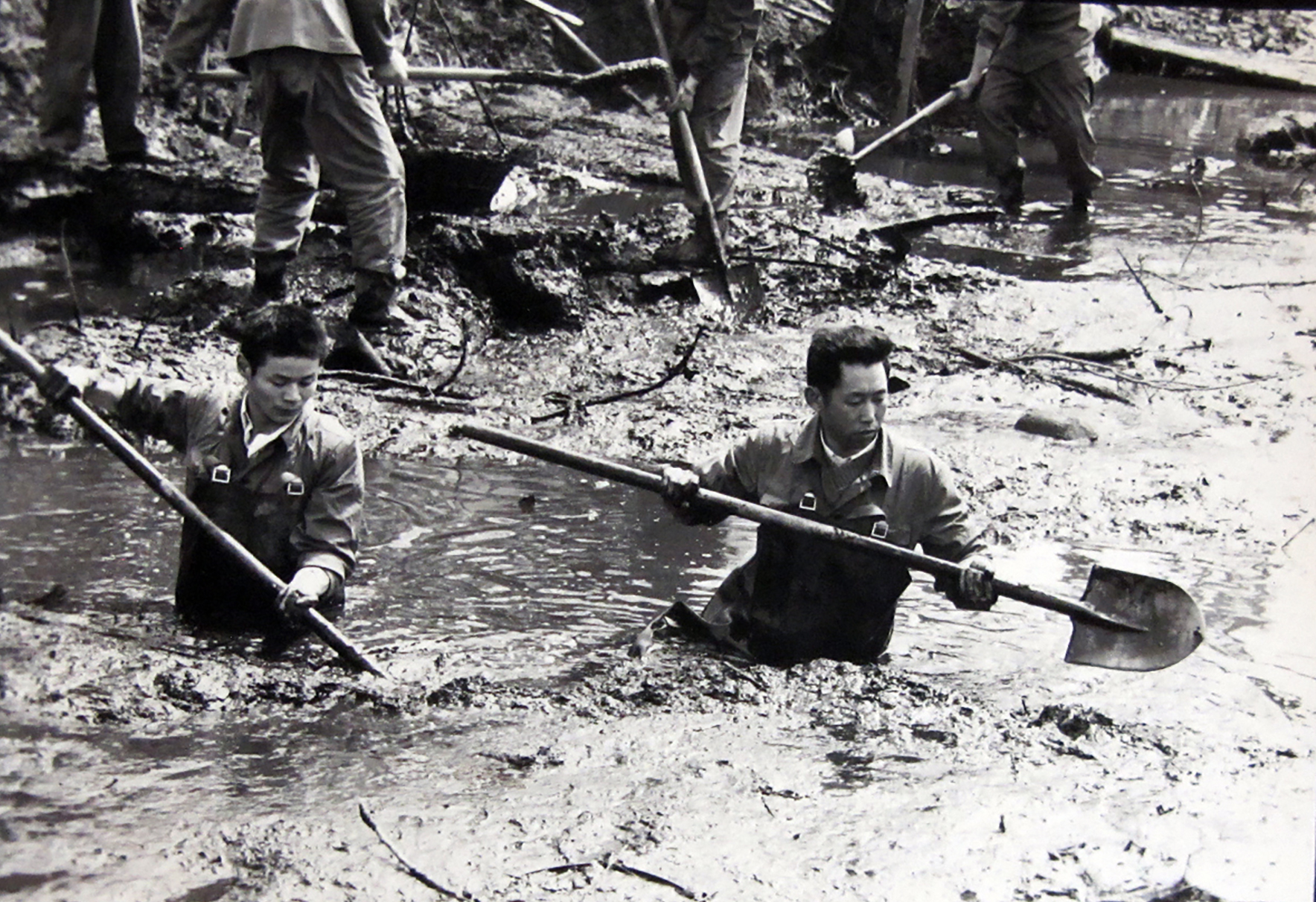 这组照片的拍摄者是原南京军区人民前线报社记者、江苏省摄影家协会原副主席、军休干部许家声。据他回忆道,1985年,为了美化城市建设家园,南京对中华门城堡、秦淮河、护城河等进行大清淤行动,驻宁部队主动请缨,其中,“临汾旅”出动千余官兵,打响十里秦淮治理攻坚战。官兵们发扬英雄部队的光荣传统,没有挖掘机等大型设备,靠肩挑人抬完成了清淤任务。市民纷纷自发来送水送茶、慰问演出。当第一阶段施工结束,部队返营归建时,南京市民依依不舍,夹道欢送子弟兵。这期间,许家声拍摄了一组反映“临汾旅”官兵参加秦淮河清淤的照片,是南京双拥工作的一份重要历史见证。