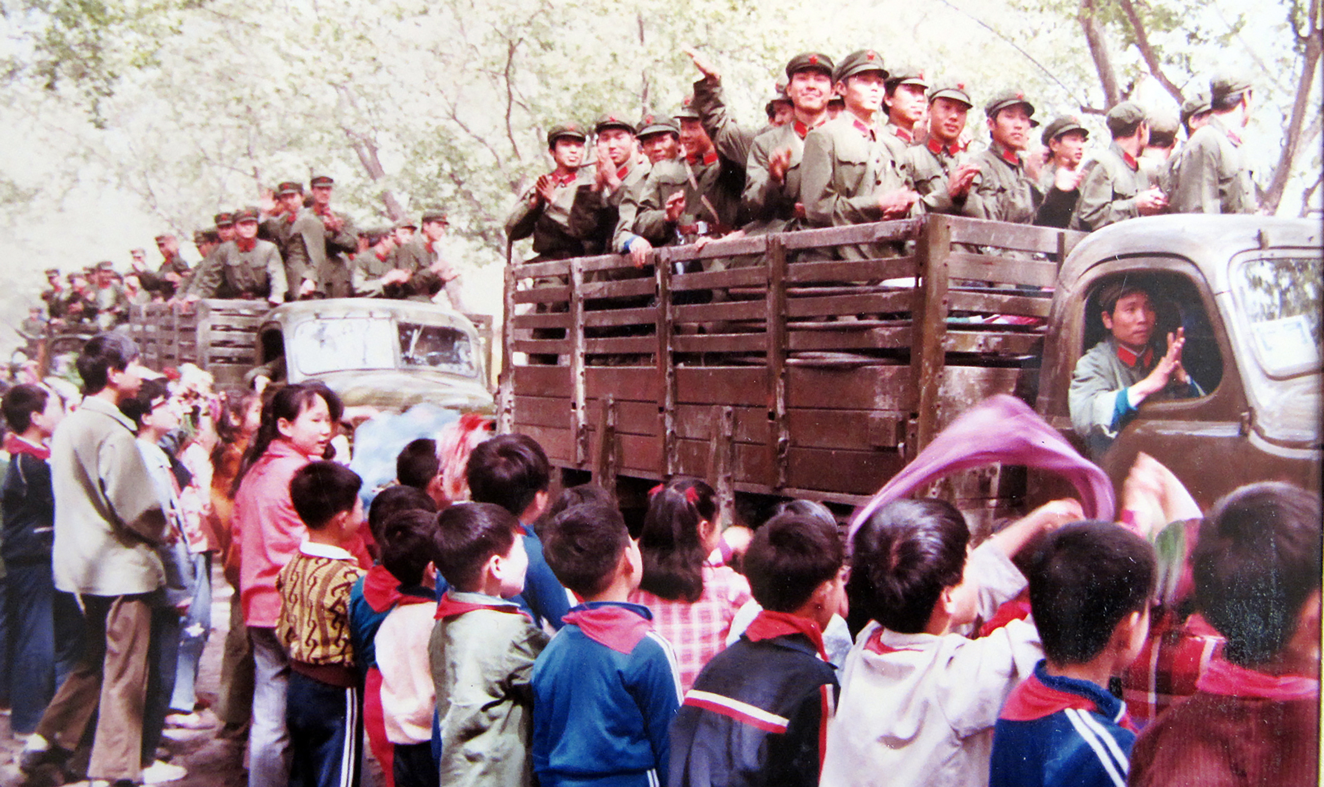 一些小学生来工地慰问演出,有一对穿着粉红背心和黄色毛衣的双胞胎姐妹十分引人注目,天真活泼。“我特地用当时很珍贵的彩色胶卷拍了一张照片,当时答应回去洗好后送给她们。”许家声说。