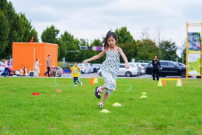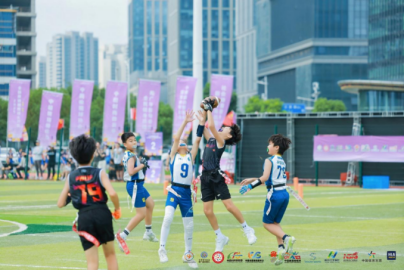 9岁的腰旗橄榄球“老将”Aiden从广东专程赶来,赛后与家人打卡江北美景,成为“赛事引流—文旅消费”的生动缩影。赛场外的嘉年华同样精彩,近百家商户组成的特色市集涵盖户外装备、航空模型、创意手工与各地美食,三天销售额近百万元。儿童青少年体能训练师公益培训同步开展。长假前四天,活动全网传播量突破7000万次。