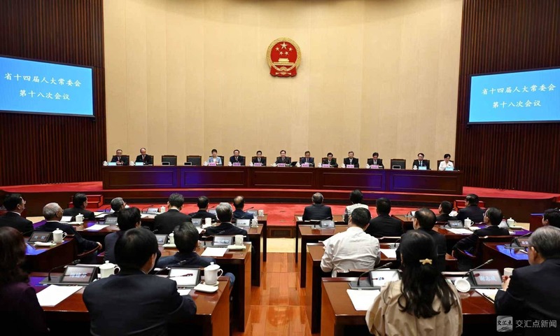 交汇点讯 10月9日下午,省十四届人大常委会第十八次会议在南京召开。省委书记、省人大常委会主任信长星主持会议,副主任樊金龙、张爱军、魏国强、夏心旻、周广智、张宝娟和秘书长陈建刚出席会议,副省长赵岩、省法院院长夏道虎、省检察院检察长赵铁实,省监委负责同志列席会议。
