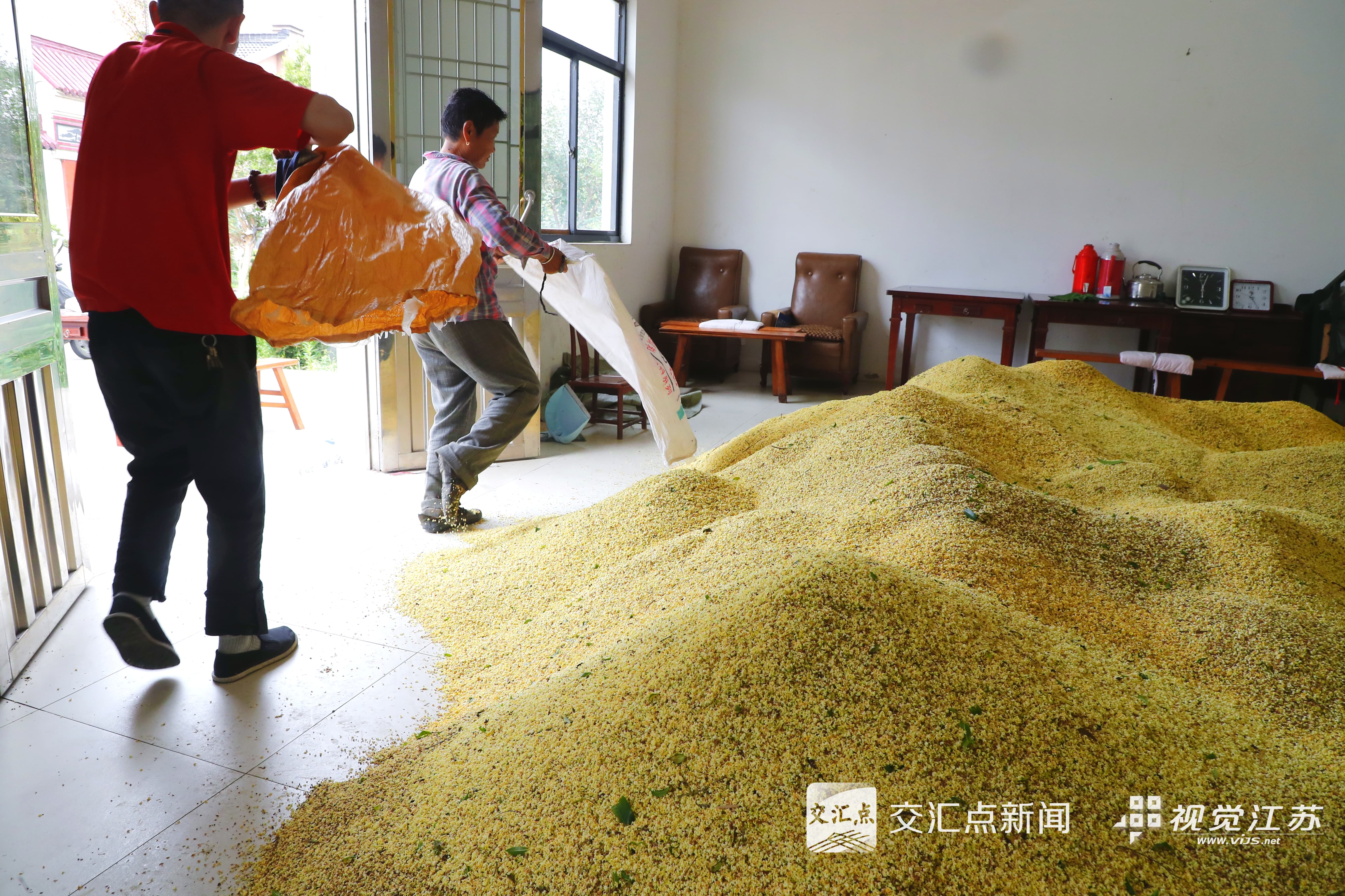 金秋时节,沃野流金。江苏各乡村迎来丰收季,水稻、玉米等庄稼陆续成熟,葡萄、脆梨等果实满枝,菊花、桂花等遍地花香,鱼蟹养殖采收忙......渔船满载而归,农民抢抓农时收割,确保颗粒归仓,田间地头洋溢着丰收的喜悦。