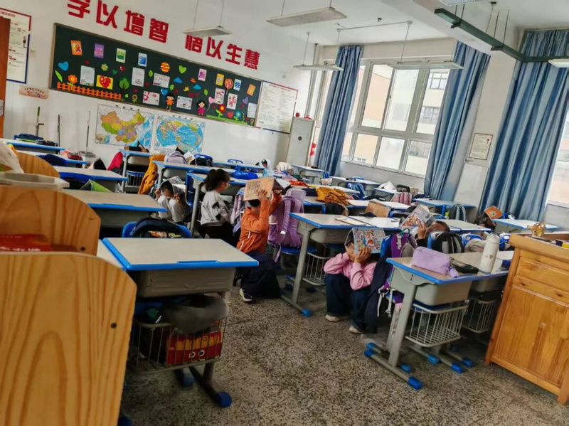 今年,星瀚小学开展了“科学防震减灾 守护生命安全” 系列安全教育活动。各班防震减灾主题班会精彩纷呈。老师们化身 “安全魔法师”,借助多媒体课件,以“地震避险口诀”“家庭应急包配置指南” 为切入点,结合汶川、唐山等地震案例展开互动讨论。一(2)班创新采用 “情景模拟 + 角色扮演” 模式,同学们分组模拟 “教室避震”“户外避险”场景,在实践中熟练掌握“伏地、遮挡、手抓牢”的避震要领,让防灾知识变得有趣又好记。